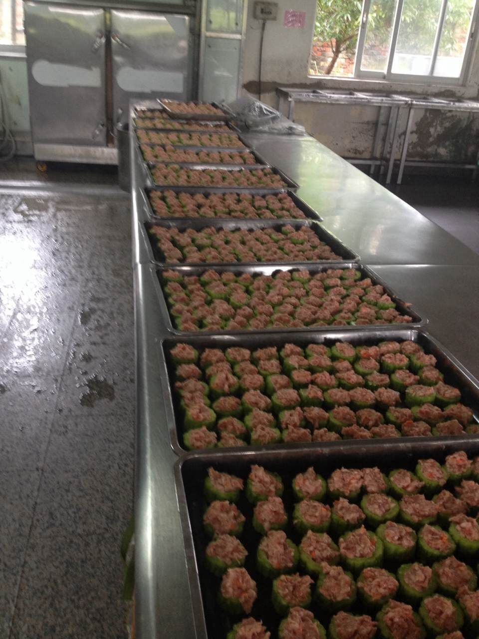 把肉餡釀入苦瓜中,上鍋蒸約十分鐘